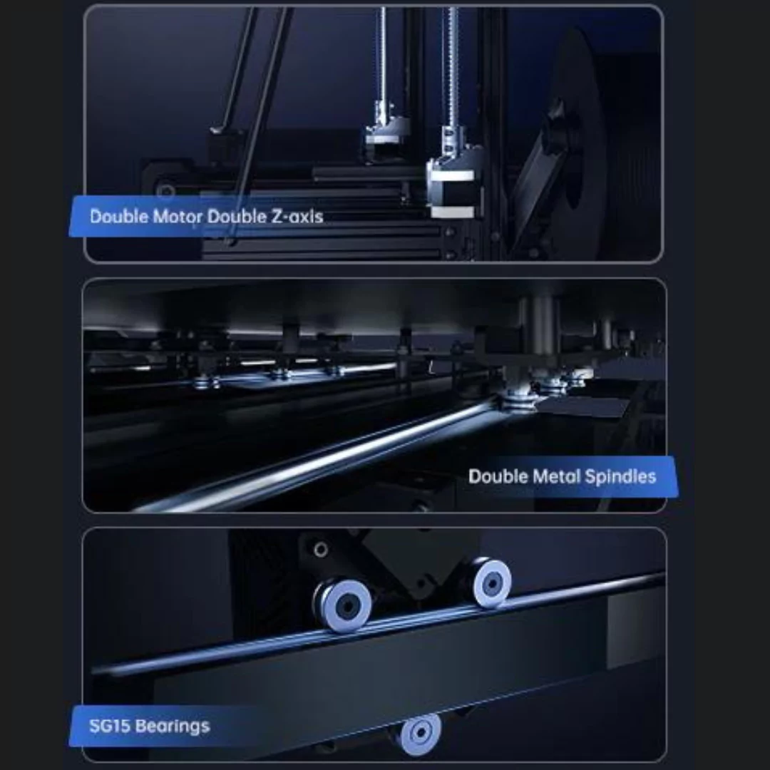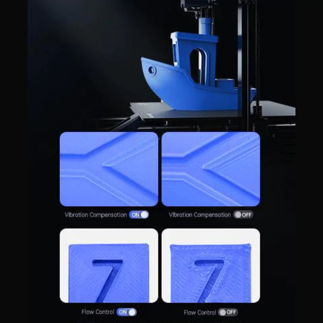 Utilizing a direct extruder and a dual-motor dual-Z-axis motion system expertly fine-tuned for extrusion and cooling, this configuration ensures the efficient and precise delivery of materials. This results in rapid melting and cooling processes, leading to seamless operation and minimized visibility of layer lines.