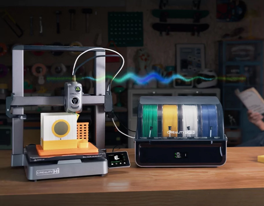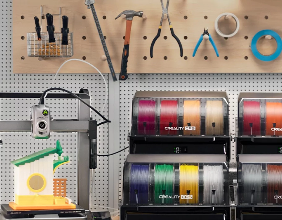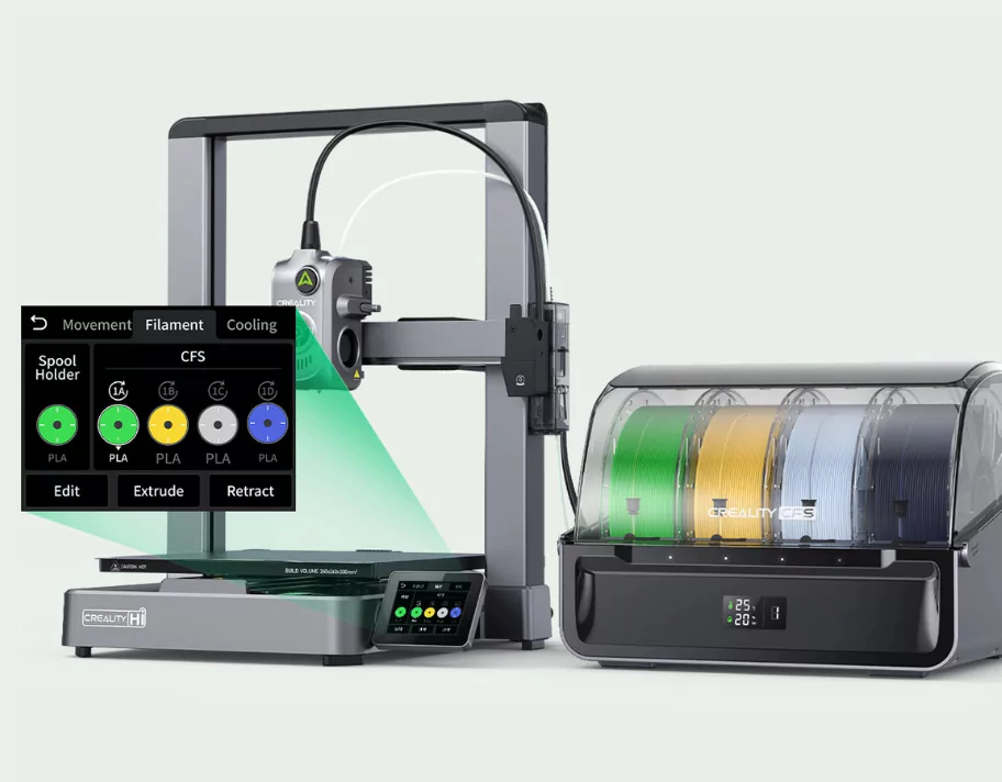 The Hi Combo supports Creality's Filament System (CFS), giving users the power to print with up to 16 colors when four units are connected. It's a seamless way to add color transitions and snap-away supports, all without needing to post-process or paint your models.