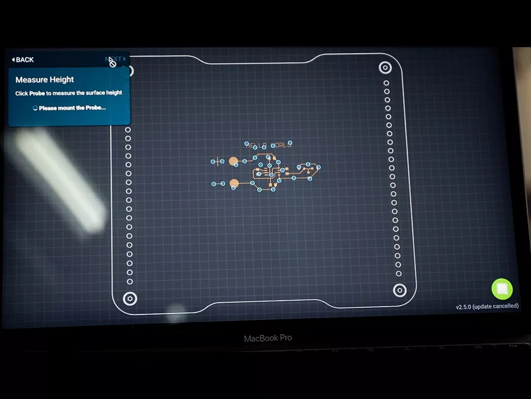 High-precision probe creates a height map of your substrate. The V1 makes micro-adjustments to ensure constant 100-micron printing height. Works on rigid materials like FR4, glass, ceramics, and flexible substrates like Kapton.