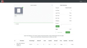 Within a minute or less, the tool will calculate the cost of 3D printing your design, taking into account the selected options, material usage, and any other relevant factors. You’ll immediately see the total price, no waiting for manual quotes.