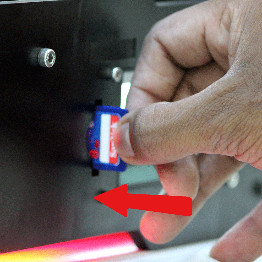 Insert the SD card in the SD card slot near the Display in the 3D Printer.